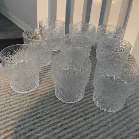 Iittala Hopla lasit, 5 kpl, Tapio Wirkkala. Korkeus 11,8 cm, halkaisija 6,5 cm. Nouto Järvenpäästä. Käteismaksu.