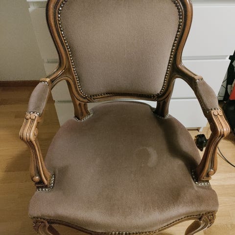 Tästä innokkaalle entisöijälle mielenkiintoinen projekti! Kaksi kauniisti koristeveistettyä rokokootuolia. Tuoleissa liimaamista puuosissa ja verhoilun uusinta. Tällaisia ei enää tehdä. 25 € kpl, Vain nouto.
