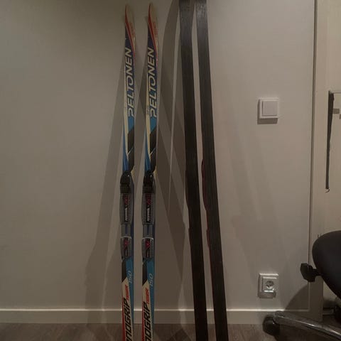 Myydään Peltosen perinteisen hiihtotavan sukset. Pituus 150 cm, nanogrip-pohja ja Rottefella NNN siteillä.