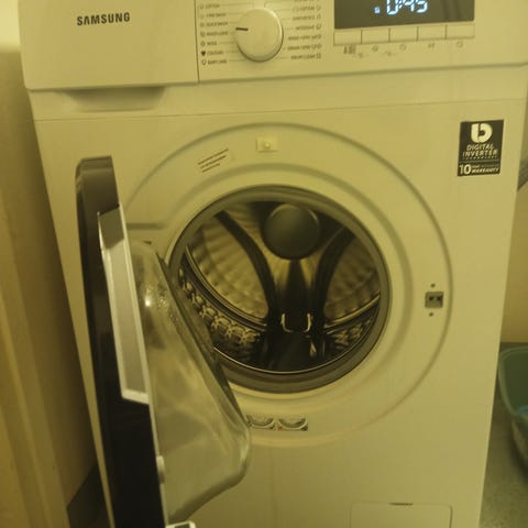 Samsung WW80T4240CX edestä täytettävä pesukone.