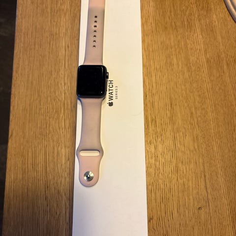 Täysin toimiva Apple Watch series 3. Akun kapasiteetti 88%. Näytössä hieman naarmuja, mutta näkyvät vain valoa vasten, eikä häiritse käyttöä. Mukaan saa laturin sekä 3 ranneketta, jotka näkyvät kuvissa. Valkoinen ranneke hieman värjääntynyt. Jos jäi kysyttävää nii laita rohkeasti viestiä!