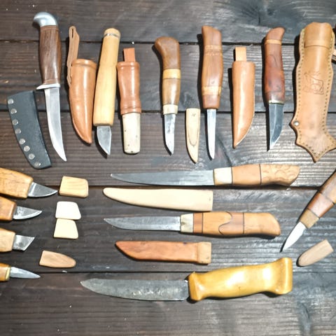 Todella hienosti toteutettu käsityö puukko, terä on ruostumaton ja kätevän kokoinen kaikenmoisiin puuartesaani hommiin, tai vaikka edc veitseksi koonsa puolesta. Teräsuoja on puuta ja puukko istuu siihen hyvin.