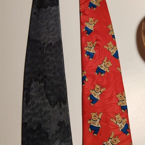 Sinisen sävyisiä kravatteja. Yhden materiaali on silkki, loput polyesteri. Myydään yhdessä.