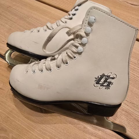 Käytönjälkiä näkyy (kuva 5-7). Luistimissa on perinteinen nauhakiinnitys ja musta kantakorko.