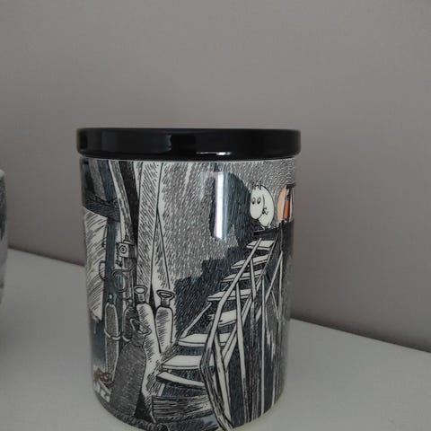 Arabia Muumi purkki 1,2L Seikkailu Muutto. Uusi. Tarrallinen