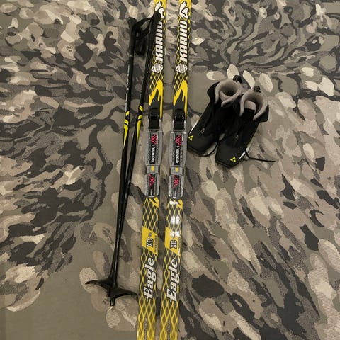 Sukset Karhu 140cm, Monot Snowstorm koko 33, Sauvat Rex 100cm. Käytön jälkiä on. Ihan käyttökelpoiset ja ehjät. Nouto/käteinen.