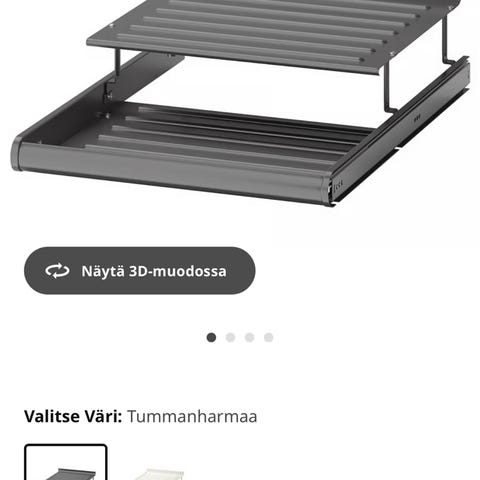100cm leveään, 58 syvään kaappirunkoon sopiva komplement - kenkäteline 16 kenkäparille. Yhdestä rengistä lestiosa kadonnut. Kiskot ja ruuvit mukaan. Edes kiskoja ei saa ikeasta tällä hinnalla.