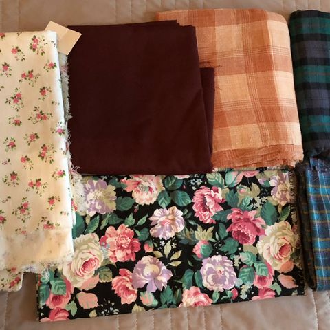 Erilaisia kankaita eri väreissä ja materiaaleissa sekä ompelutarvikkeita, kuten nauhoja, lankoja ja kankaanpaloja. Saa tulla penkomaan mieluiten viikonloppuna Järvenpään keskustassa. Hyvät tarjoukset huomioidaan.