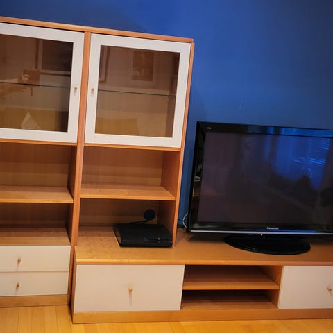 Myytävänä samaa sarjaa olevat tv-taso, lasivitriinikaappi ja seinähylly. Myydään koko setti hintaan 50 € tai osat erikseen hintaan 20 €/kpl vitriini ja tv-taso sekä seinähylly 10 €.