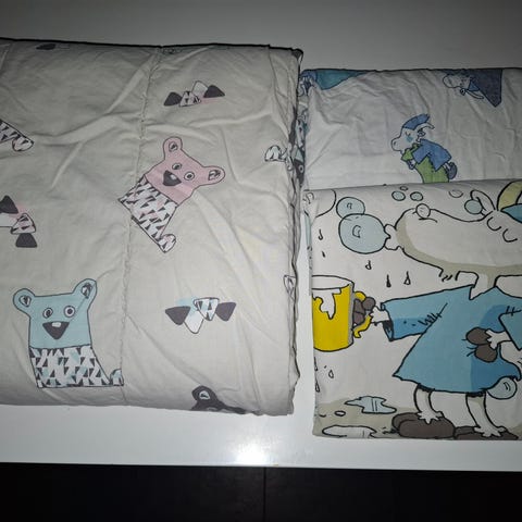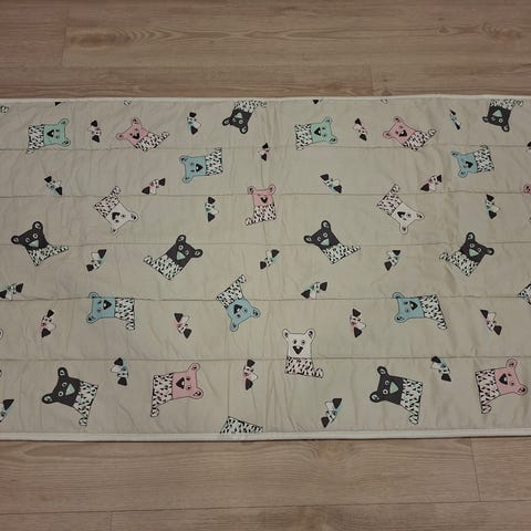 Lasten peitto 115cm x 150cm. Mintunvihreä pohjakangas, jossa söpöjä eläimiä.