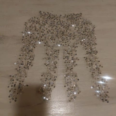 Avaamattomat pinkit ja kullanväriset paljetit, molemmissa reikä keskellä mahdollusta ompelua varten