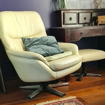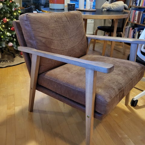 Ruotsalaisen Mio-brändin nahkainen Today Two-nojatuoli 2000-luvun alkupuolelta. Hyvä kunto, hieman ajan patinaa (ks kulumat kuvista 5 ja 6).