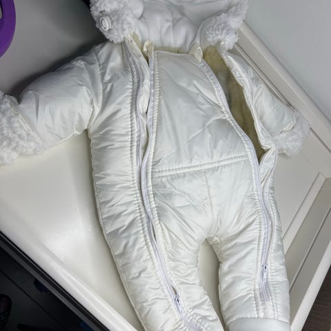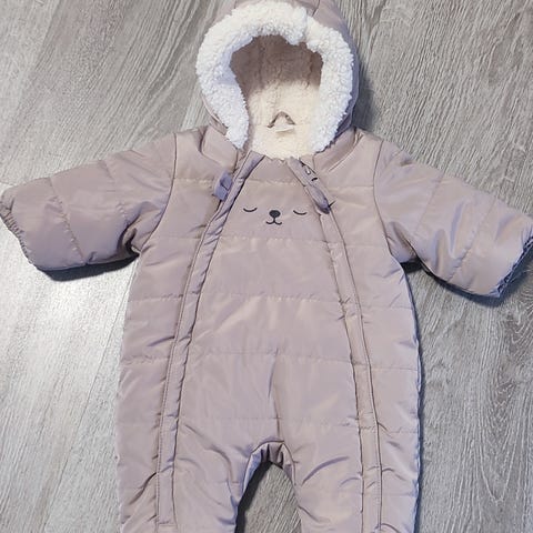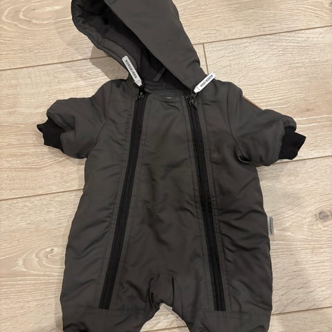 Kätevä vetoketju haaroissa ja edessä tuplana sivummalla. Lahkeissa nepparit. Pehmeä, lämmin, irroitettava huppu.