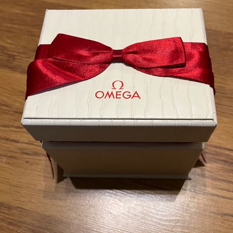 Omega unisex kello kotelo ja pakkaus sisältää alkuperäisen kellokoteloon ja pakkauksen. Kotelo on valmistettu puumaisesta materiaalista ja sen mitat ovat noin 18 cm leveys. Sopii Omega-kellojen säilytykseen ja kuljetukseen.