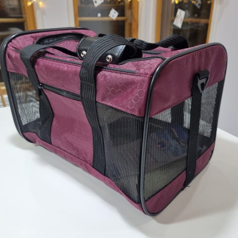 Koiran lentolaukku, lentokeneen sisätiloihin korkeintaan 7 kg koiralle. Kaksi viikkoa vanha, ollut käytössä yhden lennon ajan Rovaniemi - Helsinki. Ei pissattu. Täysin uudenveroinen. Olkahihna. Pehmuste. Pantalukko. Toimii myöskin alustana, kannen saa pois. Mahtuu lentokeneen penkin alle. Ostettu Peten koiratarvike liikkeestä. Maksoi 89,90, nyt tarpeettomana.