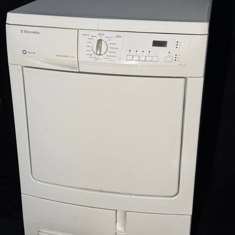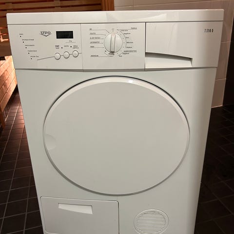 Varaosiksi otsikon kuivausrumpu, rummun toinen kannatinpyörä rikki (ei saa enää varaosana), muuten kunnossa oleva laite.