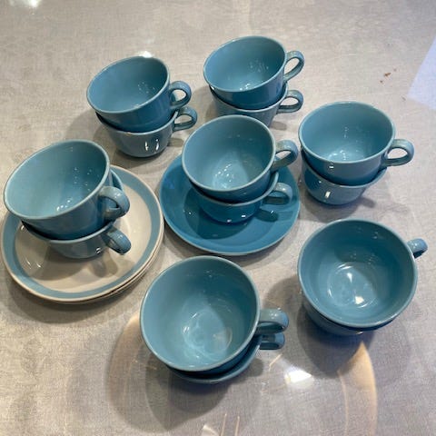 Vanhaa keltaista Arabiaa, vintage, 5 kuppia, 4 lautasta