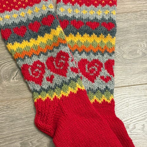 Uudet Naisten vihreä/ harmaat villasukat 38, Seitsemän veljeksen langasta kudotut vahvistetulla kantapäällä.