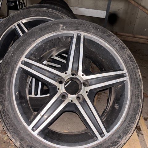 Siitä vähän harvemmin tarjolla olevat c63 w204 amg vanteet. Olleet itellä w212 alla ja mielestäni istuvat kyllä hyvin auton alle. Takana pidin 15mm lättyjä mutta mahtuu pyörii ilmankin. Vanteet eivät ole näyttelykuntoiset, meinaan että pieniä käytön jälkiä näistä löytyy, mutta yleisilmeeltään tosi siistit ja suorat. Vanteet saa halutessaan ilman kumeja. Etuset vaihtokunnossa.