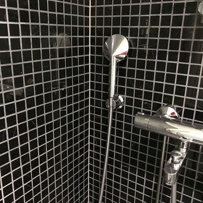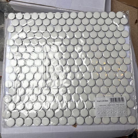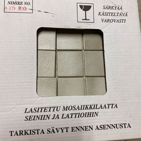 Arkkeja 13 kpl yhteensä 1,17 m2. Viininpunainen ja musta vuorottelevat mosaiiikki-laatoissa.