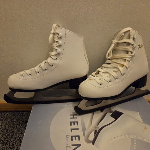 Valkoiset kaunoluistimet Katharina V3Tec. 22cm sisämitta on suositelu 34 kokoiselle jalalle, vaikka lukee 36. Hyvässä kunnossa, vain muutama naarmu ulkosyrjällä. Vahvaa paksua kangasta. Uutena ostetut. Tarvii teroituksen. Saa tulla sovittamaan.