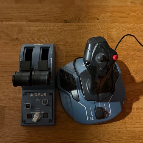 Ostan tavaroita. Thrusmaster, flight, simulator.