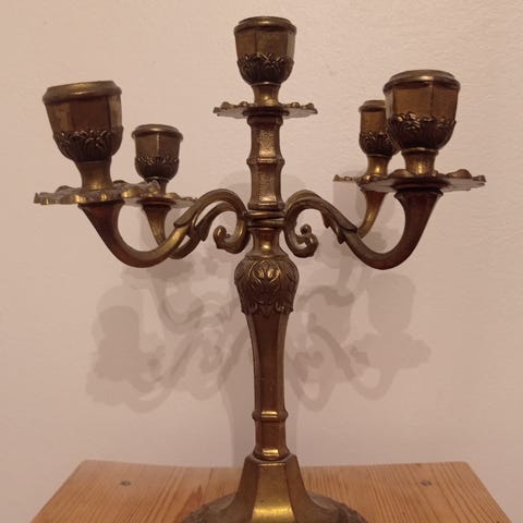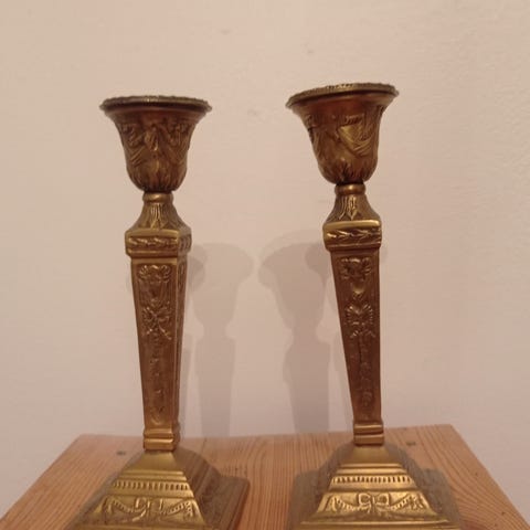 Kaksi puista maalattua kynttilänjalkaa