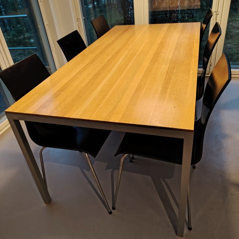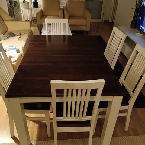 Pohjanmaan puinen ruokapöytää ja 6 tuolia