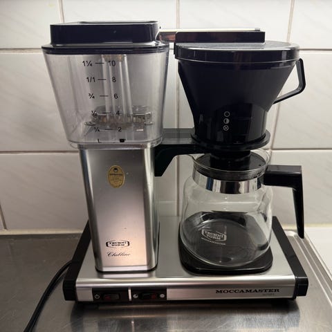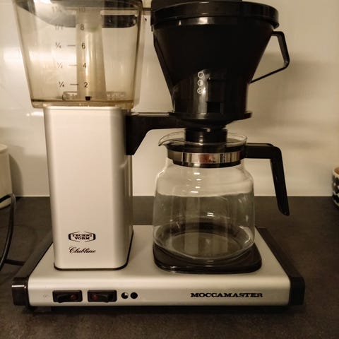 Myydään kullanvärinen Moccamaster-keitin ilman kannua. Suodatinteline tulee mukaan.