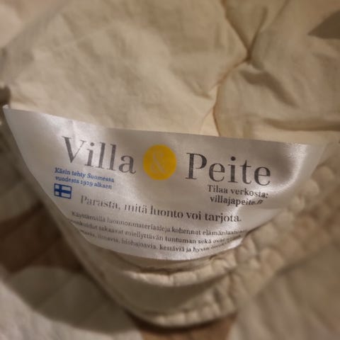 Myydään Villa ja Peite lastenpeitto koossa 110x150 cm. Hyvässä kunnossa, ehjä ja tahraton. Peitossa on villatäyte ja päälikangas on 100% puuvillaa.
