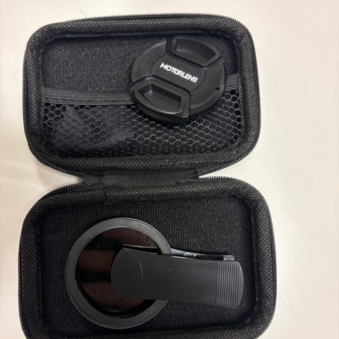 Myydään älypuhelimeen sopiva kameraobjektiivisetti. Setissä macro- ja fisheye-objektiivi, joilla saa puhelimen kamerasta monipuolisempia kuvia. Yleismallinen klipsikiinnitys sopii useimpiin puhelimiin. Mukana kätevä vetoketjullinen suojakotelo.