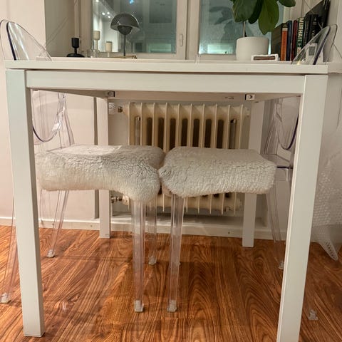 Myydään näppäränkokoinen valkoinen ruokapöytä