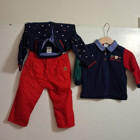 Punaiset farkut ja puuvillainen "kauluspaita"