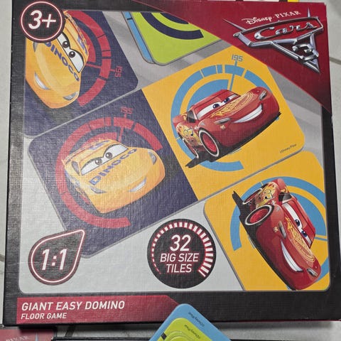 Disney Pixar Cars Racing Game lautapeli, sisältää 3 metrin pelilaudan ja neljä pelinappulaa eri väreissä. Sopii yli 4-vuotiaille lapsille.