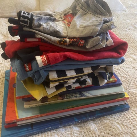 Pieni vaatesetti pojalle. Osassa vaatteita pikkuvikaa, hyviä vielä arkeen tai rymyämiseen. Kuvista näkyy kunto. Koko 120 ylöspäin. Eri merkkejä, mm H&m ja NameIt