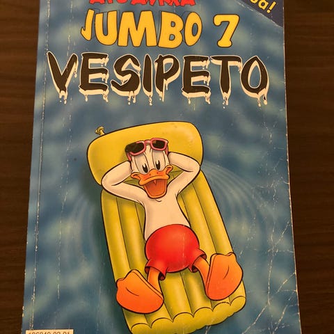 Myynnissä pehmeäkantinen Walt Disney: Aku Ankka Jumbo. Kulumaa kannen kulmassa. Savuton ja eläintalous (=löytyy mahdollisesti eläimen karvoja). MMM.