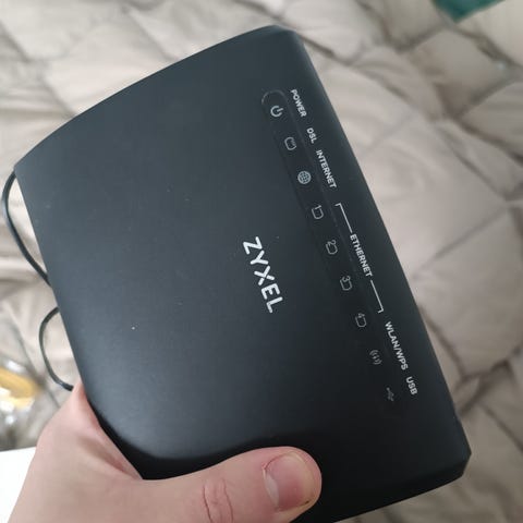 Kotiboksi Zyxel VMG3925-B10B -modeemi/reititin. Se on Zyxel Communications A/S:n valmistama VDSL2- ja WLAN-modeemi.