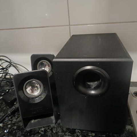 Toimii hyvin ja yleisilmeeltäänkin siistikuntoiset. Pesee monet vastaavanlaiset tietokoneelle tarkoitetut kaiuttimet tehon ja äänenlaadun puolesta. Postitus tai nouto.