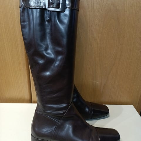 VIA VAI, täysnahkaiset saappaat. Mustat. Kokomerkintä 36, sisämitta 23,5cm ja mitattu 37 koon pohjallisella. Varren pituus kannan yläreunasta varren suuaukkoon 34cm, korko 5cm, suuaukko 38cm. Koristeniittejä varressa, pieni venyke. Käytetyt siistit, ei puhdistettu nyt. Ei sovituksia, ei toridiiliä, en tingi, en kuvaa jalassa! Nouto tarkka aika etukäteen sovitusti ma-pe kl.10-16 Hki 88 tai postitse pakettina varret taitettuina.