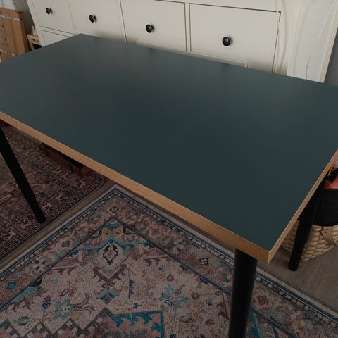 Kokonaan musta, metallinen työpöytä lasilevyllä. Erittäin tukeva ja vakaa, sopii hyvin kirjoitus-, tietokone- tai työpöydäksi! Ei kulumia tai naarmuja.