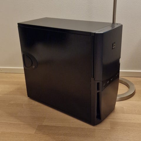 Kevyt pelikone esim esport pelaamiseen tai työasemaksi rakennettuna vanhempaan Fractal Design -koteloon, josta yksi edessä oleva suoja puuttuu.