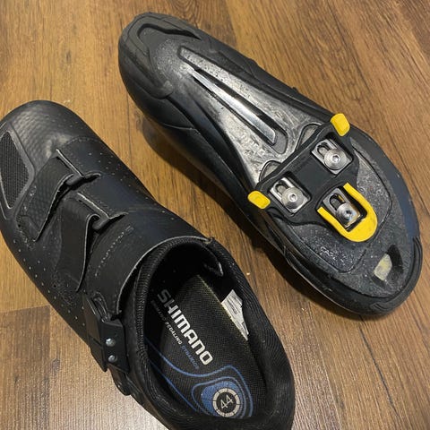 Shimano R087 pyöräily kengät ja SM-SH11 SPD SL klossit. Kengät siistit, toki pohjassa naarmuja koska käytetyt. Koko 46.