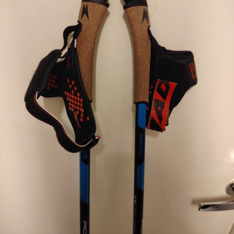 Karhu maastohiihtosauvat sinisen ja keltaisen väriset. Varustettu säädettävillä hihnoilla ja kahvoilla. Soveltuvat maastohiihtoon.