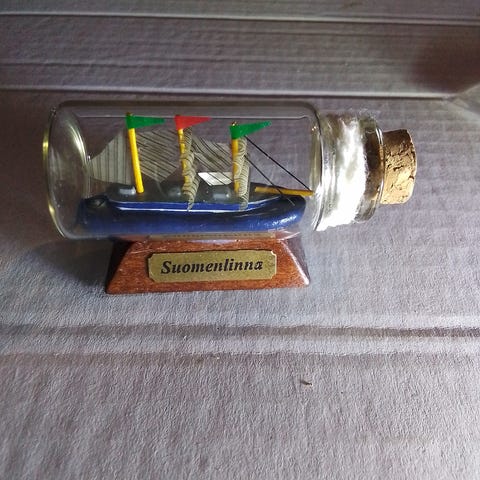 Matkamuisto Norjasta 70-luvulta,suola-astia ja lusikka,tina.