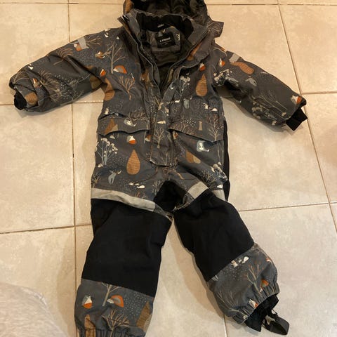 Toppahaalari 98 cm Everest. Hyvä käytetty kunto, ei huppua, lenksut venähtäneet. Yksi tahra lahkeissa, en yrittänyt poistaa.