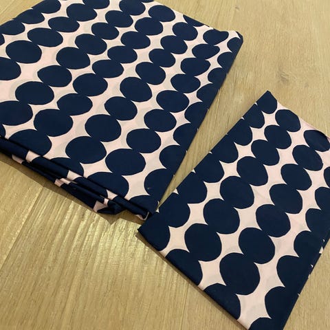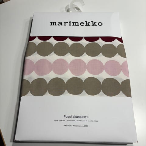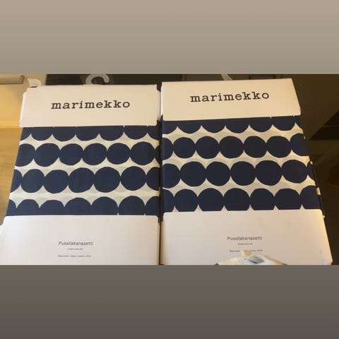 Myydään uusi/käyttämätön Marimekko Räsymatto pussilakanasetti. Setti sisältää pussilakanan ja tyynyliinan. Koko 150x210/50x60cm. Väriltään lakanan pilkut ovat tumman sininen. Pohjaväri lakanassa on valkoinen. 100% puuvillaa.