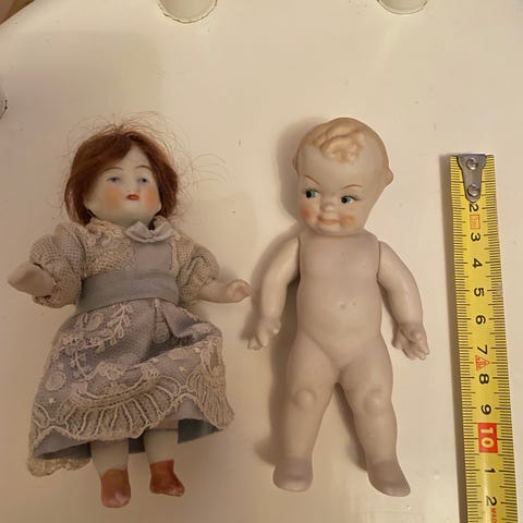 Myydään posliinisia pieniä antiikki nukenpäitä, yhdessä vuosiluku 1880, hyvä kuntoisia, / kuvan mukaisia, hinta 30€/ kpl ja isompi, yksityiskohdilla varustettu massa pää, hinta 45€. Nouto Kokkola/ Pietarsaari tai postitus ostajan laskuun, postin s-paketti 8,90€