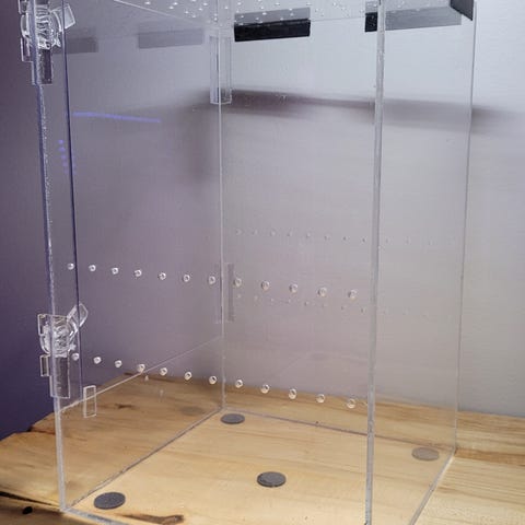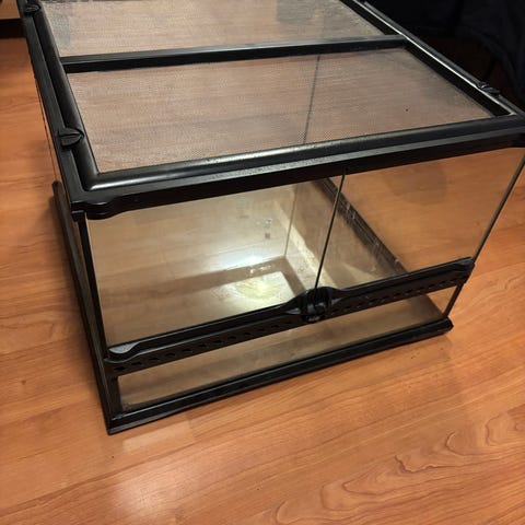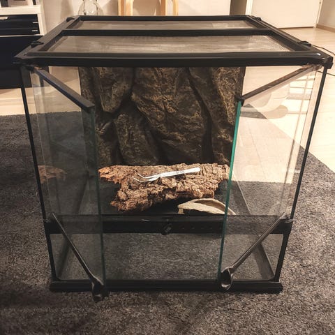 Myydään pieni Exoterra 20x20x20. Mukaan tulee tuommoinen pikku asumus ja taustalevy. Vain nouto