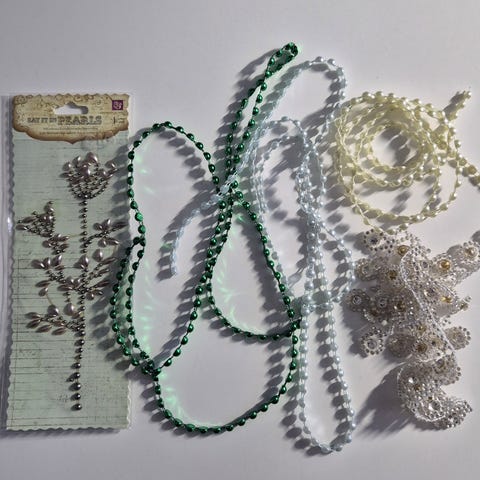 Eri levyisiä nauhoja ja kuoseja. Nauhojen / narujen materiaali polyesteria / puuvillaa. Osasta otettu ja osa avaamattomia. Paketti sisältää useita metrejä nauhaa, joista askartelee yhtä sun toista. Katso kuvat.