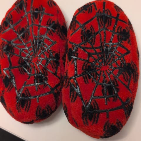 Hyvässä kunnossa olevat spider man tohvelit, ei montaa kertaa pidetty ja ovat jo liian pienet lapsille
